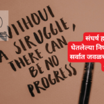 संघर्ष हा तुम्ही घेतलेल्या निर्णयाचा सर्वात जवळचा मित्र असतो संघर्ष म्हणजेच जीवनाच्या प्रवासातील अपरिहार्य टप्पा. प्रत्येक व्यक्तीच्या आयुष्यात संघर्ष हा अनिवार्य आहे, कारण संघर्षाशिवाय यशस्वी होणे कठीण आहे. संघर्षाचा संबंध हा नेहमी तुम्ही घेतलेल्या निर्णयांशी असतो. म्हणूनच, जर तुम्ही सध्या संघर्ष करत असाल, तर हे निश्चित आहे की तुम्ही आयुष्यात एखादा मोठा निर्णय घेतलेला आहे….
